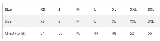 Sizes XS, S, M, L, XL, XXL and 3XL
