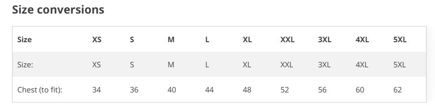 Sizes XS, S, M, L, XL, XXL, 3XL, 4XL AND 5XL